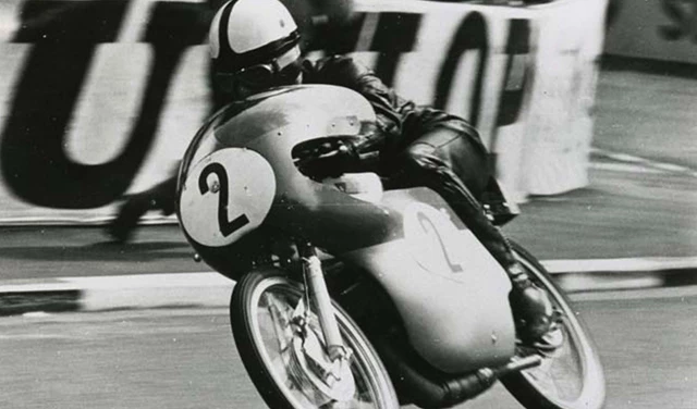 Champions du monde ! Le pilote est-allemand Ernst Degner offre à Suzuki sa première victoire au TT.