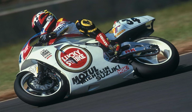 Le pilote Kevin Schwantz remporte le championnat du monde 500 cc sur la RGV.
